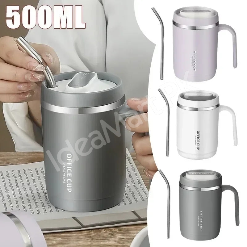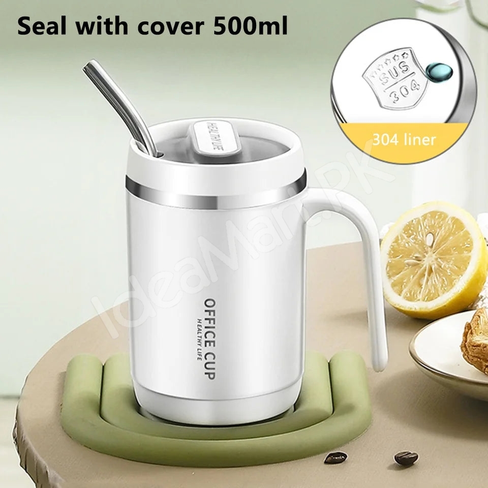 This stainless steel coffee mug combines style and practicality. The 500ml travel mug with lid is perfect for commuting, office use, or outdoor activities. Its durable construction, leak-proof design, and heat-retaining properties make it a must-have for anyone looking for a reliable, portable drinkware solution.