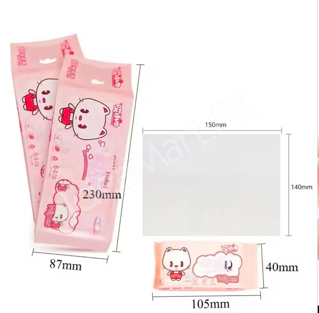 Maintain cleanliness anytime and anywhere with these Cleaning Mini Packed Wipes. Each pack contains 8 mini packets with 8 wipes each, giving a total of 64 wipes. Compact and lightweight, they are ideal for home, travel, office, school, or outdoor use.