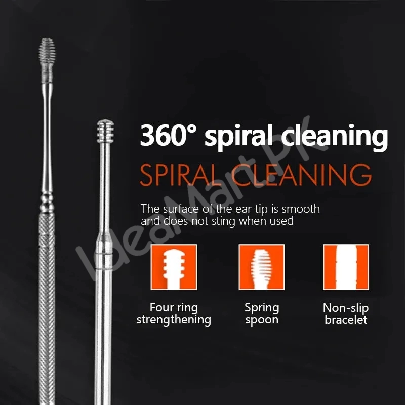 The set includes ergonomically designed non-slip handles that offer a secure grip, making ear cleaning more controlled and comfortable. The tools feature various scoop shapes, including a 360° spiral design, which helps lift wax easily while massaging the ear canal for improved comfort and cleanliness.
