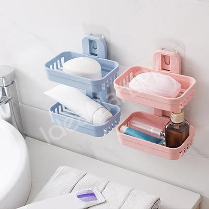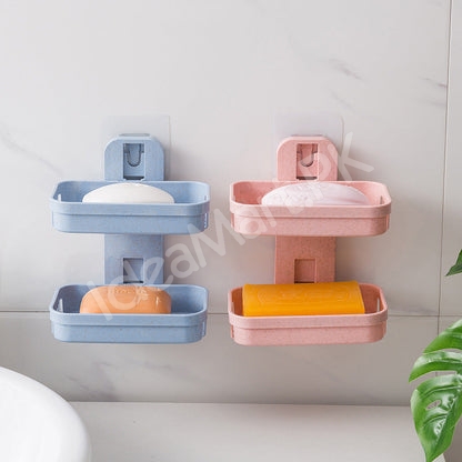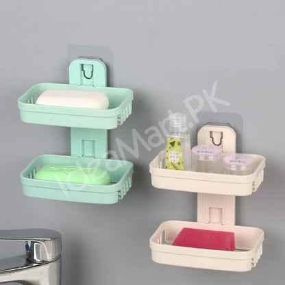 Keep your bathroom efficiently with a 2-layer plastic soap tray featuring drainage for mess-free use, designed for easy wall mounting and self-adhesive installation in Pakistan.