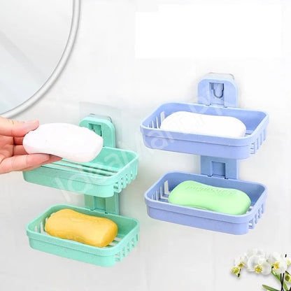 Plastic Self Adhesive Wall-Mounted 2-Layer Soap Holder with Drainage Feature