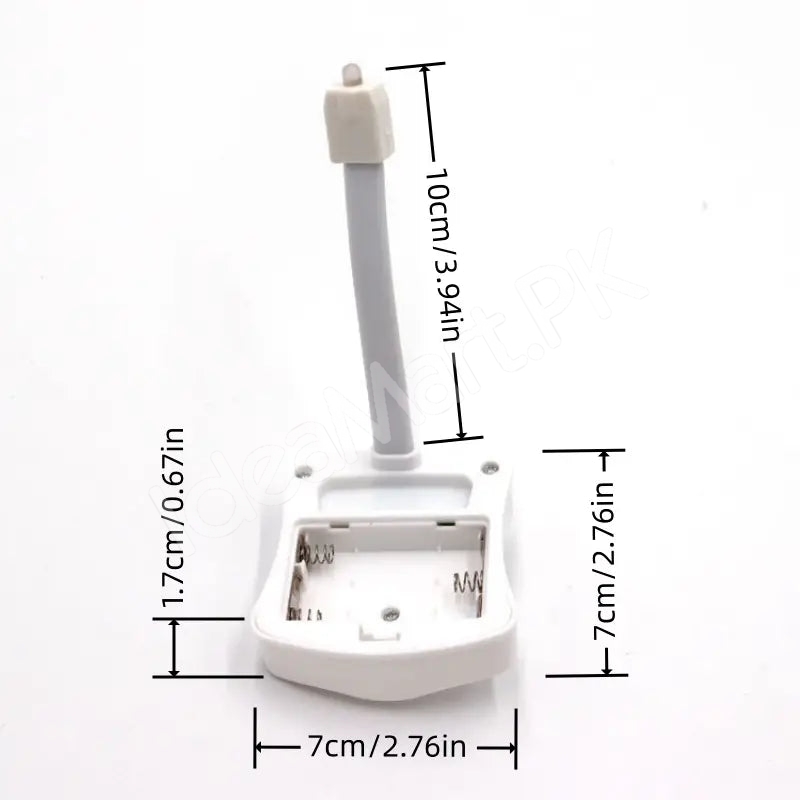 The sturdy, bendable arm clips onto most toilet seats in seconds without tools. The unit is splash-proof and simple to wipe clean, making it safe and low-maintenance for everyone — adults, teens, and small children learning to use the toilet.