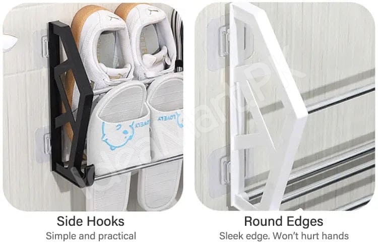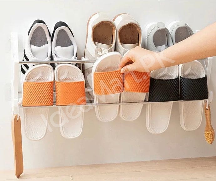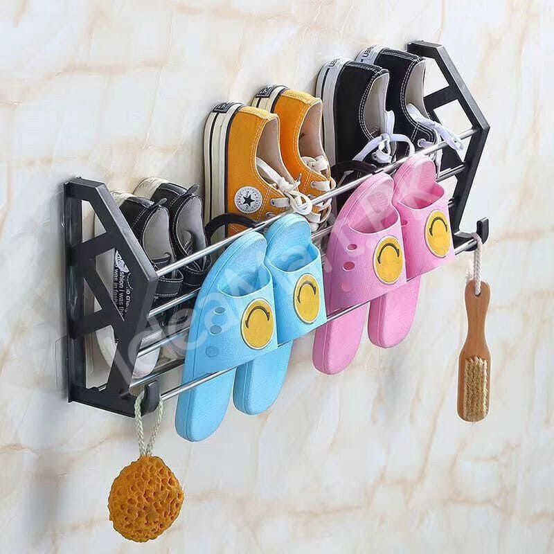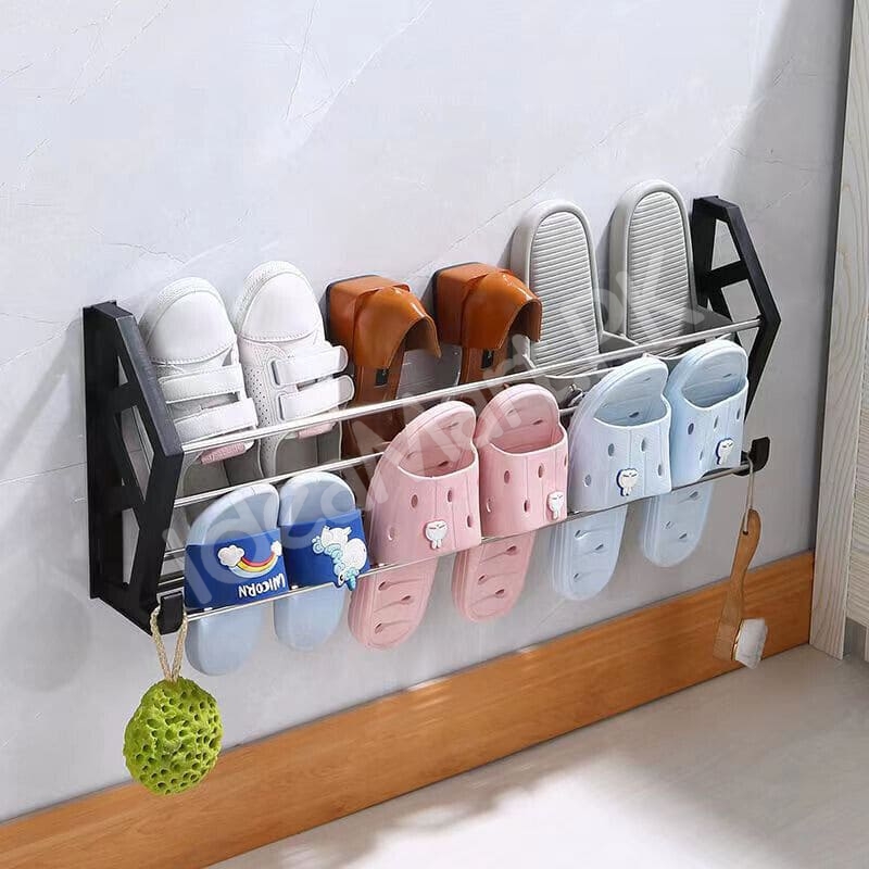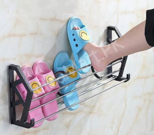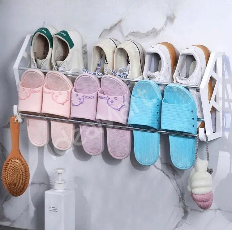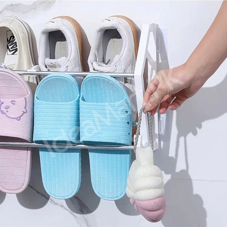 This wall-mounted slipper rack is a smart space-saving solution designed to keep your footwear neatly organized and off the floor. Fixed securely using a strong adhesive, it holds slippers firmly in place without drilling, making it ideal for everyday use in busy areas of your home.