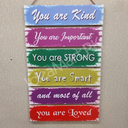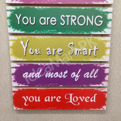 - Designed for spaces in Pakistan, this wooden wall art displays encouraging messages to inspire self-expression and positivity.