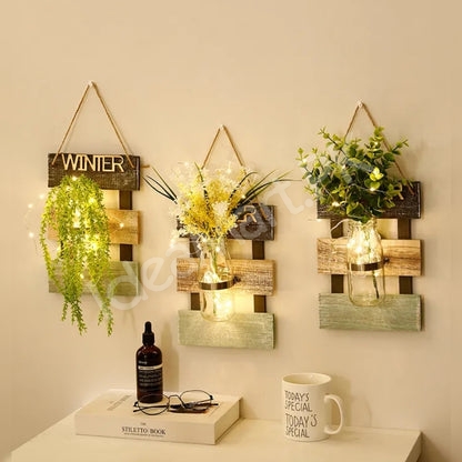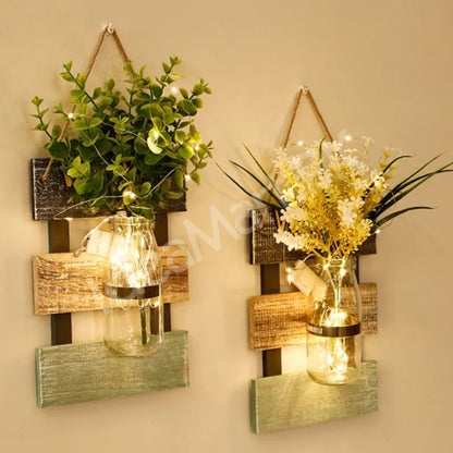 - Features a sturdy wooden frame holding a glass jar filled with delicate artificial flowers for a natural look.