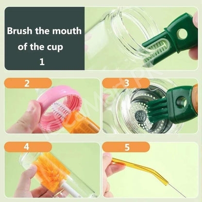 - Includes 5 different brush heads for thorough cleaning of bottles, straws, nipples, and tight spaces.