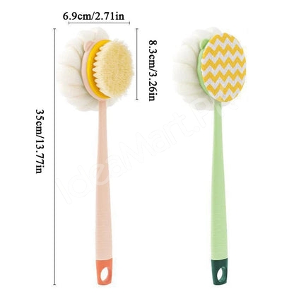 This two-sided bath scrub brush brings comfort and convenience to your daily skincare routine. With its sturdy handle and exfoliating bristles, it helps remove dirt, dead skin, and impurities effectively while offering a relaxing bathing experience at home.