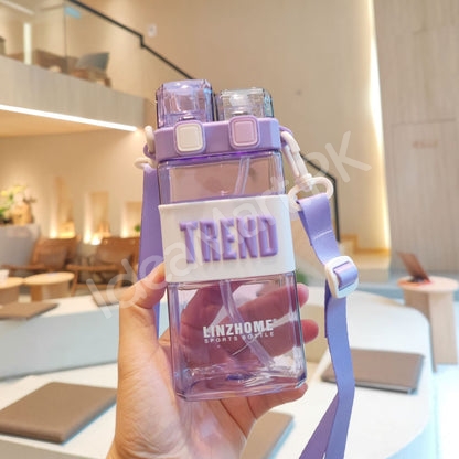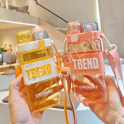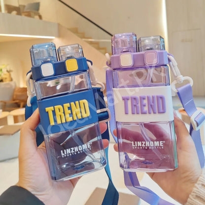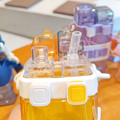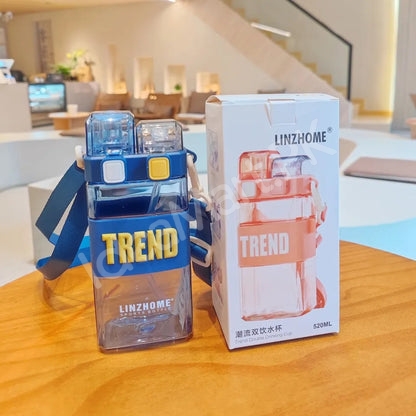 Stay hydrated on the go with this practical double drinking bottle, combining convenience, style, and functionality for daily beverage needs. Its durable plastic construction ensures long-lasting use while keeping your drinks safe and fresh.