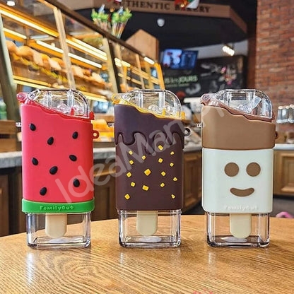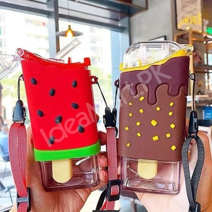 Keep your child’s drinks fresh and easily accessible with this ice cream style plastic water bottle with straw. Perfect for school, home, or travel, it combines creativity and practicality for everyday hydration.