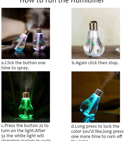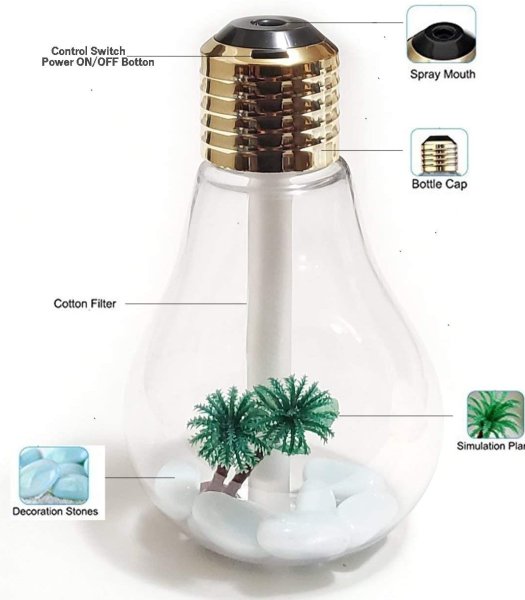 - Unique Bulb Design: Stylish Bulb-Shaped Humidifier that adds a modern touch to any room.