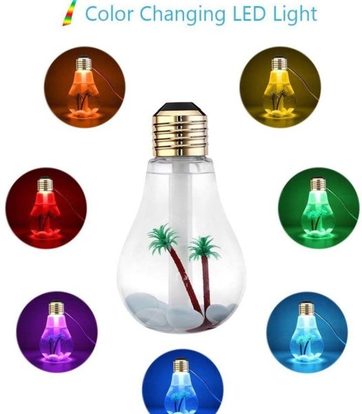 Rechargeable Bulb Shape Humidifier with 7 Color Changing LED lights, 400ml