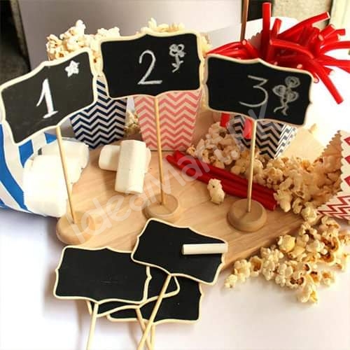 - Set of 10 mini wooden chalkboard signs for versatile labeling and decoration.