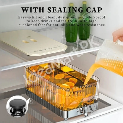 Serve chilled drinks with ease using this handy beverage dispenser made of durable plastic, a refreshing way in Pakistan to share juices, lemonade, or iced tea.