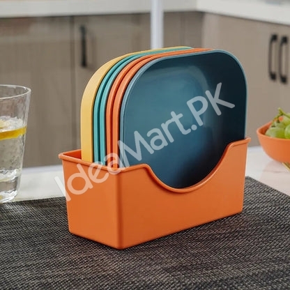 8-Pieces Plastic Plates Set With Stand, Reusable for Food Serving & Dinner