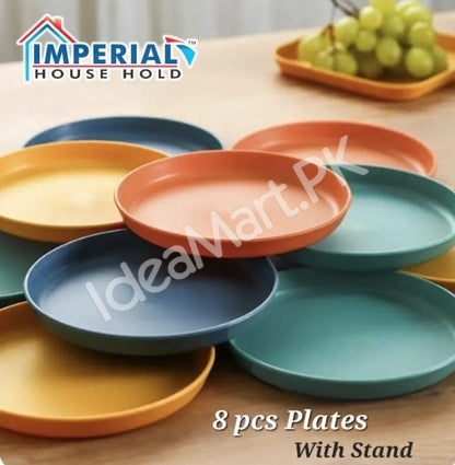 Be the first to review “8-Pieces Plastic Plates Set With Stand, Reusable for Food Serving & Dinner”
