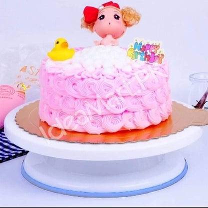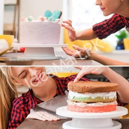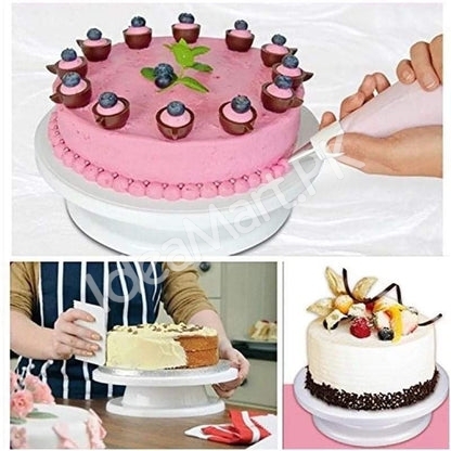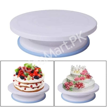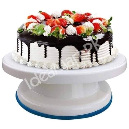 - A sturdy rotating stand that makes cake decorating simple and precise.