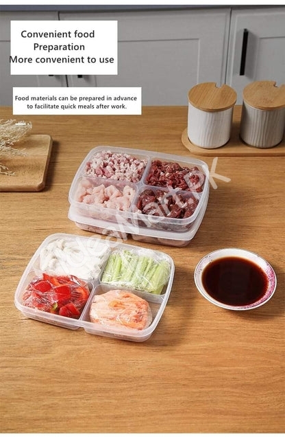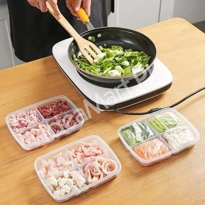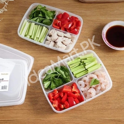 4-Grid Plastic Food Storage Box with Lid for Refrigerator & Multipurpose Food Organization
