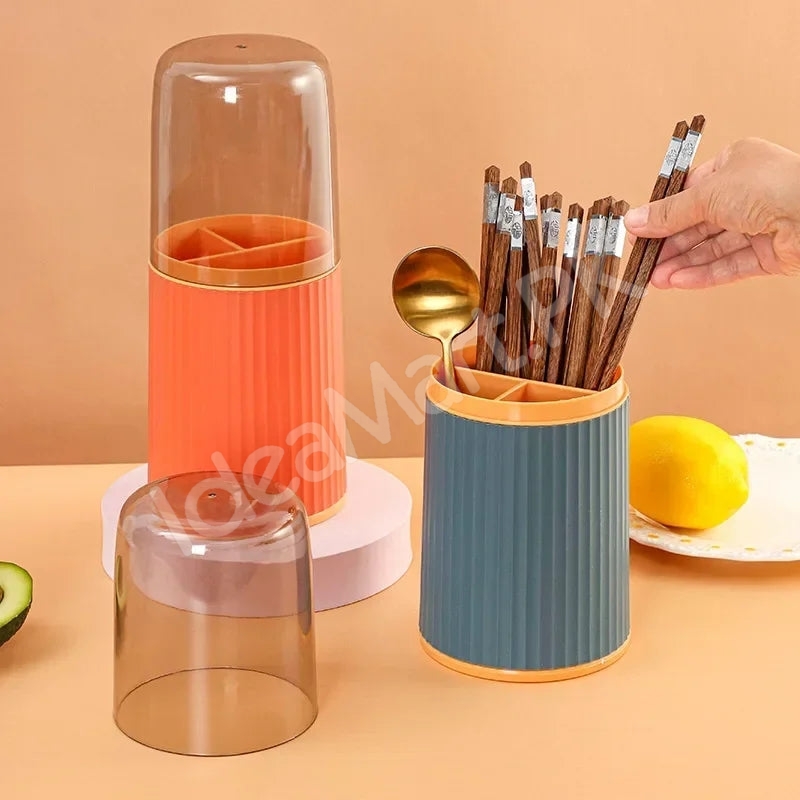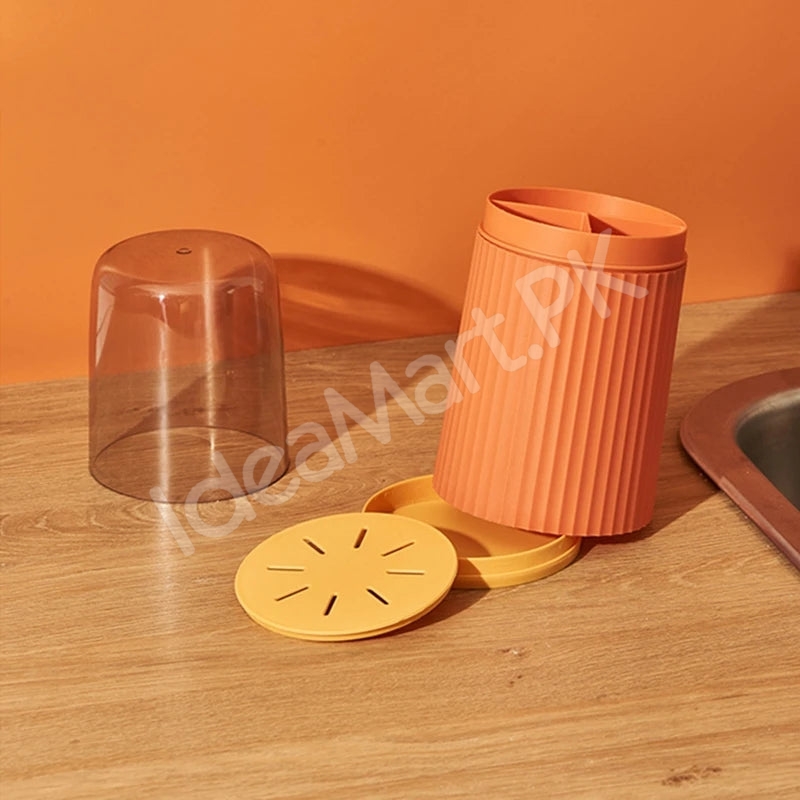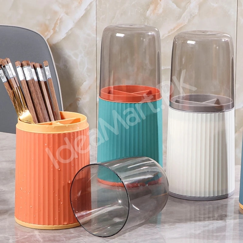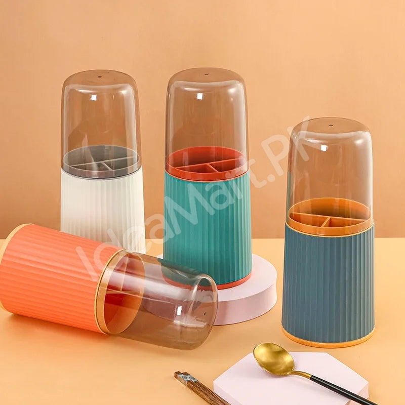 Streamline your kitchen setup with this handy utensils holder, designed with a transparent lid to keep cutlery and cooking tools organized, visible, and ready to use.