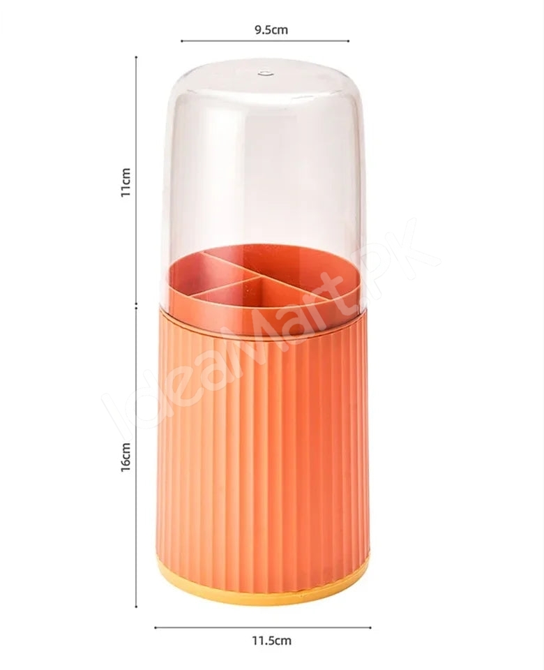 - Designed with a sturdy base and clear lid to keep utensils dust-free