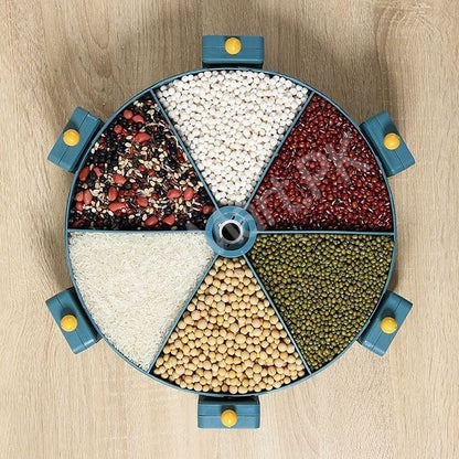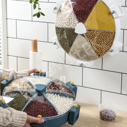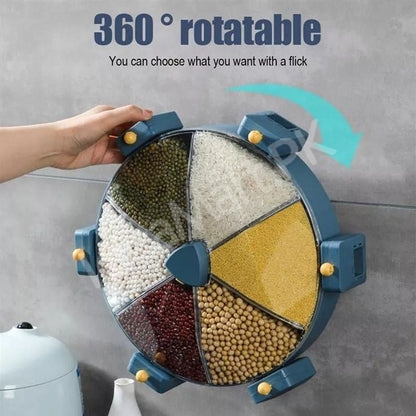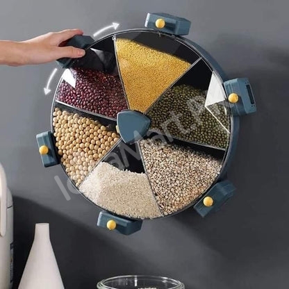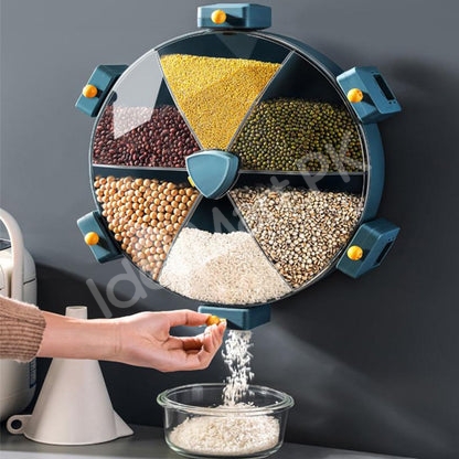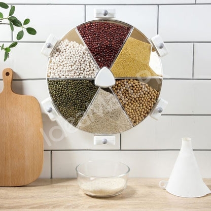 6 Grid 360° Rotating Plastic Rice & Cereal Dispenser, Wall Mounted Dry Food Storage Container
