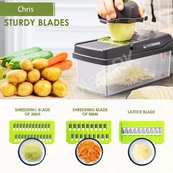 Upgrade your kitchen with this multi-functional Vegetable Cutter, designed to simplify chopping, slicing, dicing, and grating. With 7 interchangeable blades, it allows precise cuts for a variety of vegetables and fruits, making cooking faster and more enjoyable for homes in Pakistan.
