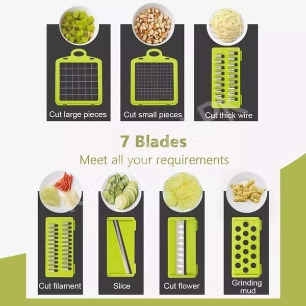 7-Blade Manual Vegetable Cutter with interchangeable Blades for slicing, dicing & Grating