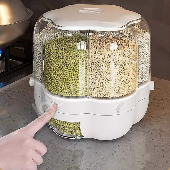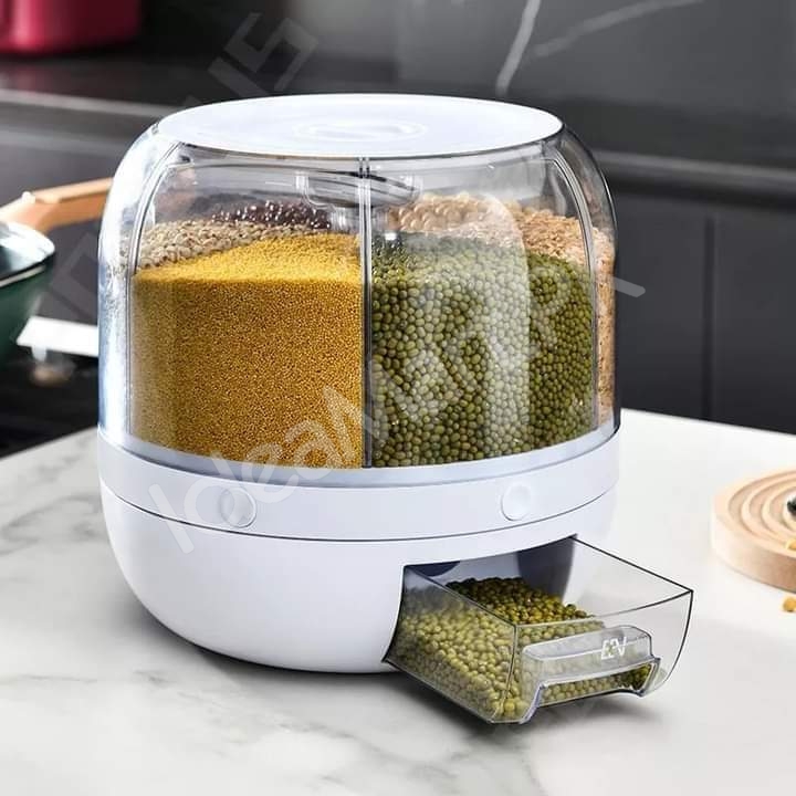 - Large Capacity Compartments: Features 6 internal partitions with a transparent body to view contents. Holds various dry foods like rice, mung beans, soybeans, red beans, oats, millet, and more.