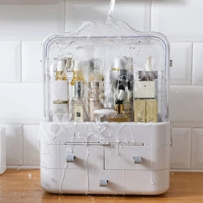 This acrylic cosmetic organizer with portable drawers combines style and practicality, ensuring all your makeup and accessories are stored efficiently while enhancing the look of your vanity space.