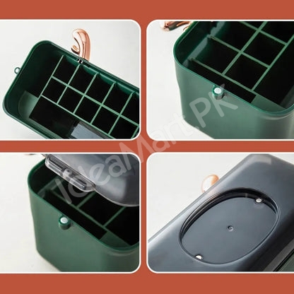 This organizer offers a smart way to arrange your cosmetics and jewellery in one place. With multiple compartments and a durable structure, it keeps your essentials easily accessible while adding a touch of elegance to your space.