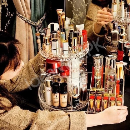 This acrylic makeup organizer combines functionality and sophistication, providing an ideal solution for keeping all your cosmetics neatly arranged and easily accessible while enhancing the look of your vanity.
