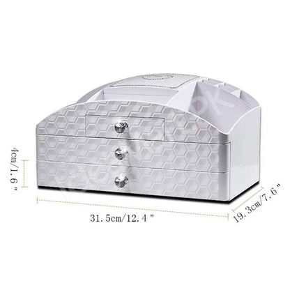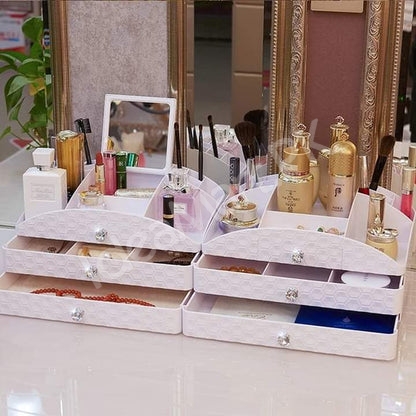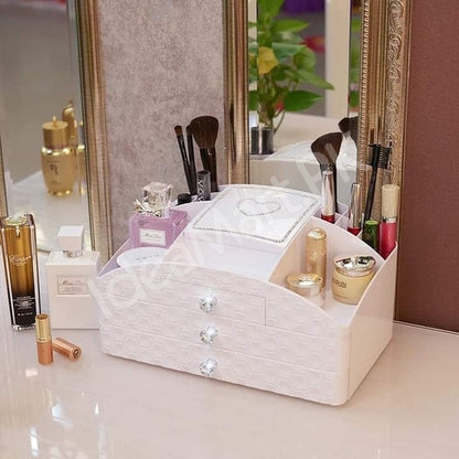 This jewelry and cosmetic organizer combines practicality and elegance, providing a perfect solution for keeping all your beauty and accessory essentials neatly arranged and easily accessible.