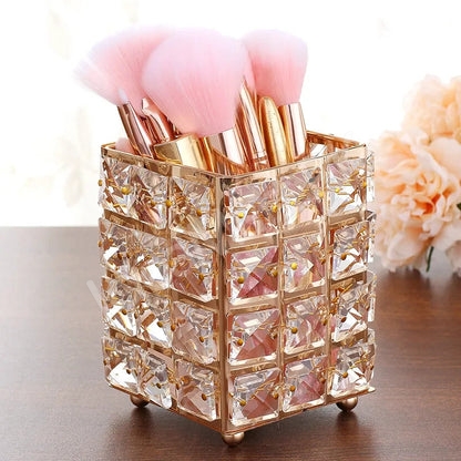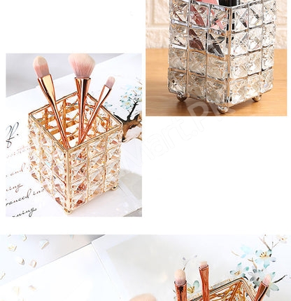 This makeup brush holder with cosmetic storage organizer combines practicality and elegance, keeping all your beauty products accessible while enhancing the look of your vanity area.