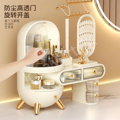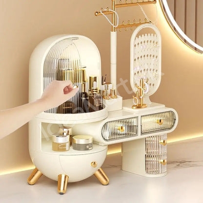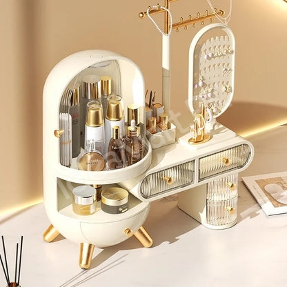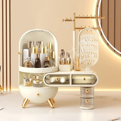 - Spacious compartments to organize skincare, makeup, and small accessories