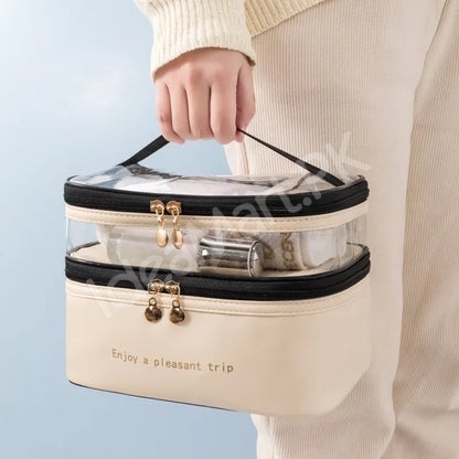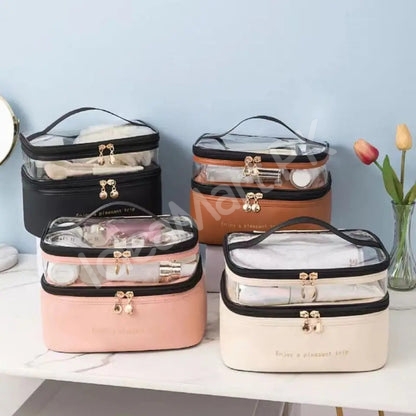 - Spacious design with multiple compartments for cosmetics and toiletries