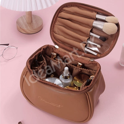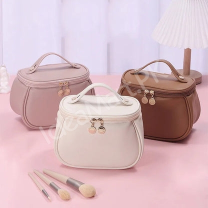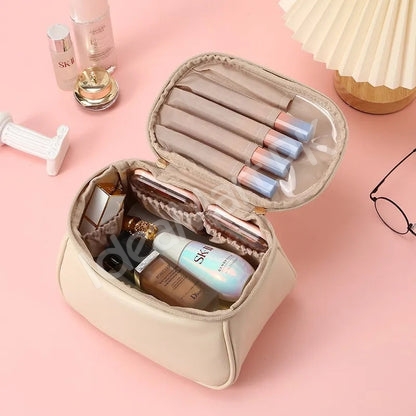Portable Leather Cosmetic Bag with Multiple Grid & Handle for Makeup & Accessories Storage