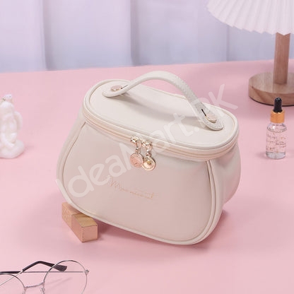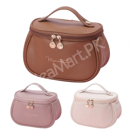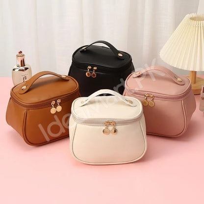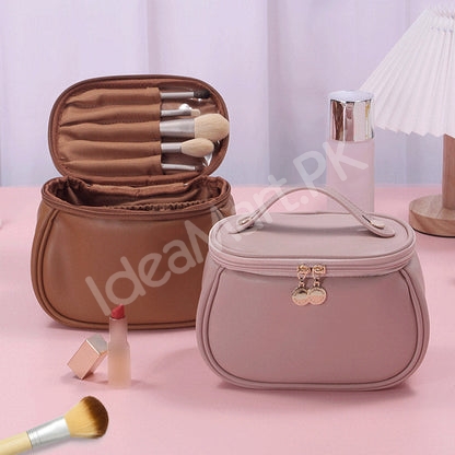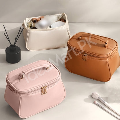 A stylish leather cosmetic bag designed for accessories storage, excellent for keeping beauty products, toiletries, and small essentials well-managed whether at home or on the go in Pakistan.