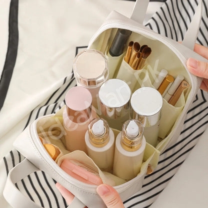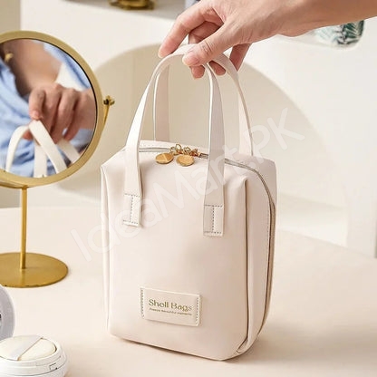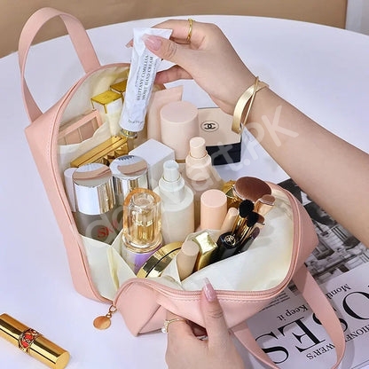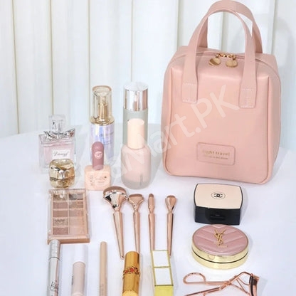 This waterproof leather cosmetic bag offers both elegance and practicality, making it ideal for vanity storage whether you’re at home or on the go in Pakistan.