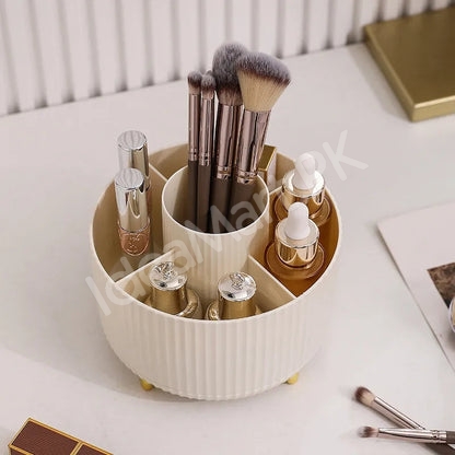 This rotating makeup brush holder is an ideal solution for organizing brushes neatly while providing convenience and style. Its thoughtful compartments and durable design make it a must-have for any cosmetics setup.