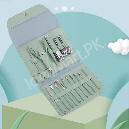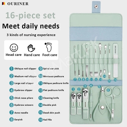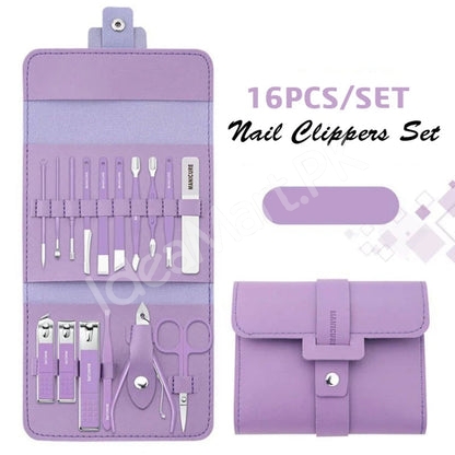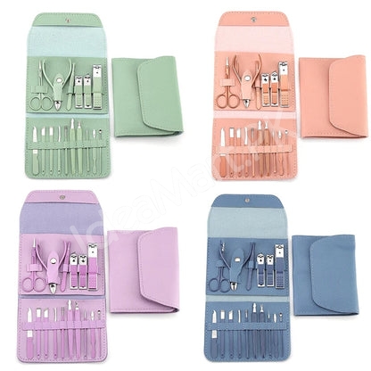 16-Pieces Stainless Steel Nail Care Set With Folding Pouch
