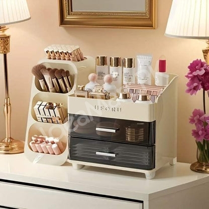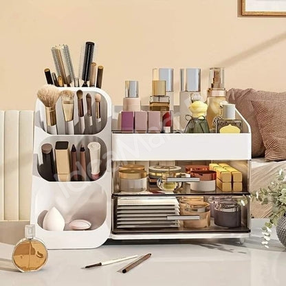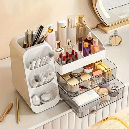 This versatile Makeup Organizer with a Cosmetic Storage Box design combines practicality and elegance, giving you an efficient way to keep your beauty products neatly displayed and always within reach.