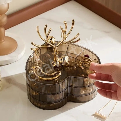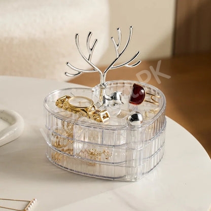 Transform your jewelry storage experience with this elegant 3-tier organizer that not only keeps your precious accessories protected but also turns them into a beautiful display. Say goodbye to cluttered drawers and hello to organized elegance.