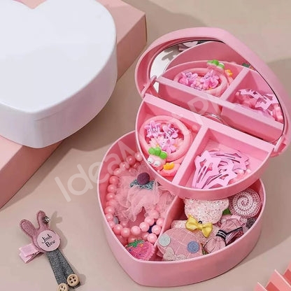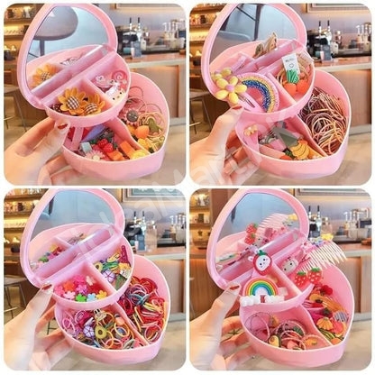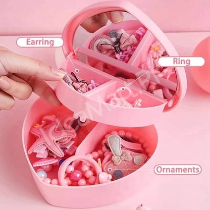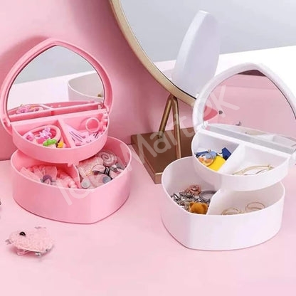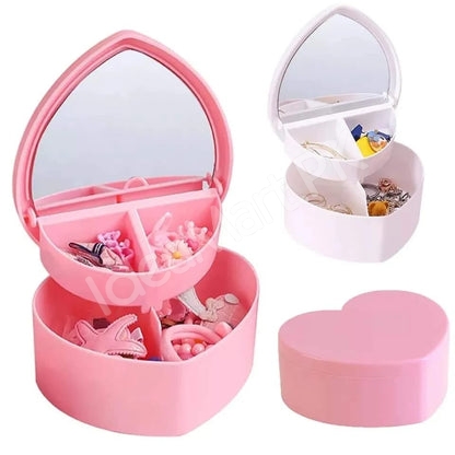 Be the first to review “Heart Shape Plastic 2-Layer Jewellery Storage Box With Mirror for Desktop Organizer”
