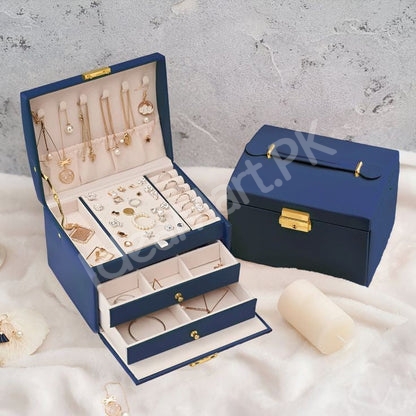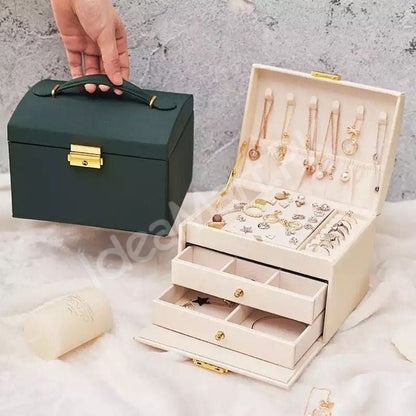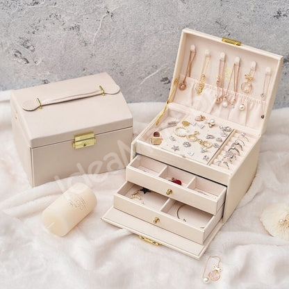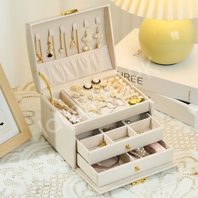 - Jewellery organizer with drawers to store rings, earrings, bracelets, and necklaces separately.