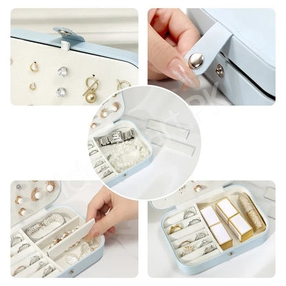 - Mini jewellery organizer design with compartments for rings, earrings, necklaces, and bracelets.