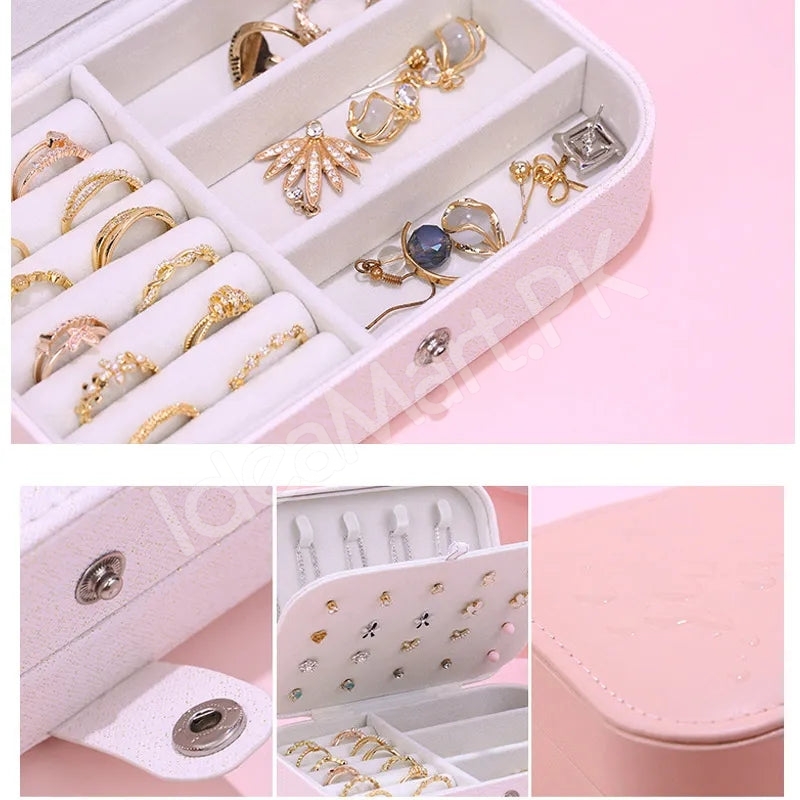 This mini jewellery organizer combines luxury with convenience, offering a stylish leather finish and smart compartments to keep your favourite accessories neatly stored and ready whenever you need them.