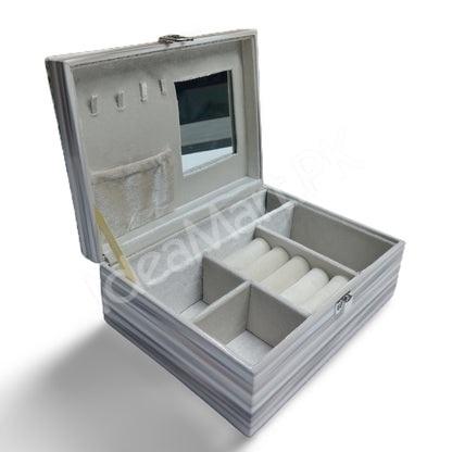 Store your accessories in style with this velvet jewellery storage box, featuring separate sections for rings, necklaces, and bracelets. A chic and functional organizer perfect for homes in Pakistan.