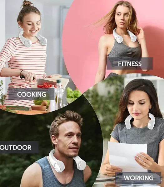 Stay cool and refreshed wherever you go with the **Portable Mini Neck Hanging Fan**. Designed for convenience and comfort, this lightweight fan features three adjustable speed settings—low, medium, and high—so you can choose the perfect breeze. The fast-speed mode provides an instant cooling effect, ideal for hot summer days. Equipped with a built-in large-capacity battery, it offers extended usage time, ensuring you stay cool longer. The fan operates quietly, making it perfect for work, travel, or relaxation. Its innovative 360-degree airflow design delivers cool air evenly around your head, providing effective relief from heat. Whether you’re indoors or outdoors, this fan is the perfect companion to beat the heat.
