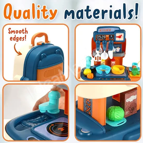 - 2-in-1 Convertible Design – Functions as both a play kitchen set and a wearable school bag.