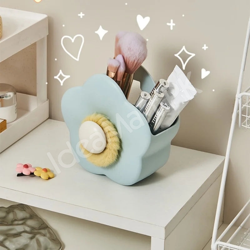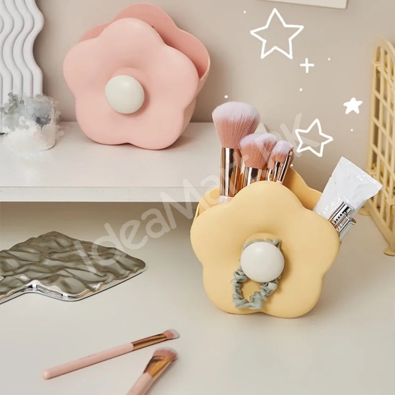 Organize your beauty tools and accessories with this versatile brush holder. Its stylish flower-shaped design adds charm to your vanity while keeping makeup brushes, pens, or other small items neatly arranged. The built-in hair tie hook offers extra convenience for everyday use in Pakistan.