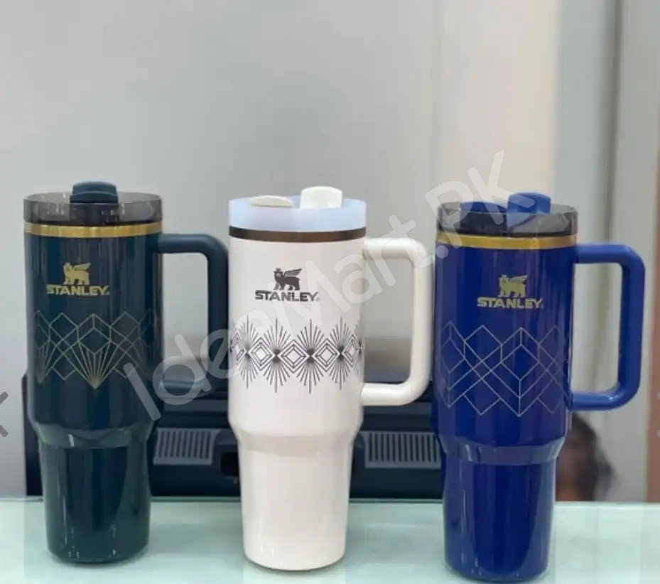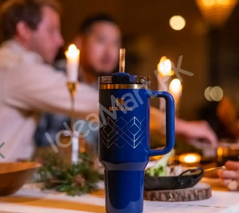 This tumbler features a modern glossy finish with an ergonomic handle for a comfortable grip. It fits most car cup holders and comes with a reusable straw and leak-proof lid. Easy to clean with a wide mouth opening, it’s perfect for office, gym, travel, and outdoor use.